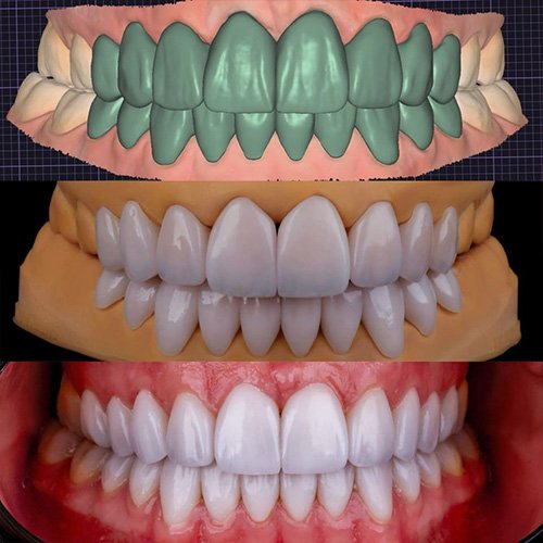 Cada faceta híbrida é produzida fora da boca e só depois instalada sobre os dentes, num processo mais rápido, confortável e seguro.